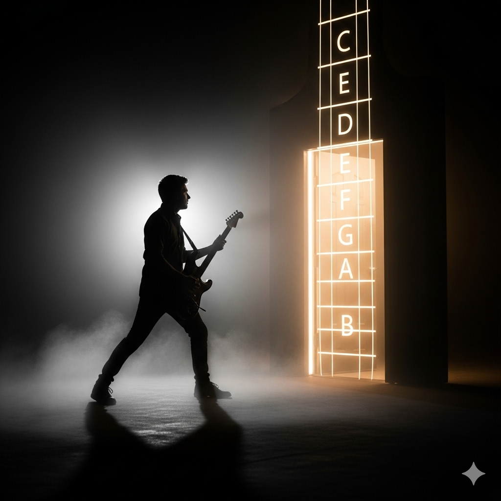 Ein E-Gitarren-Wikipedia mit wichtigen Informationen zu Tonleitern und Arpeggios