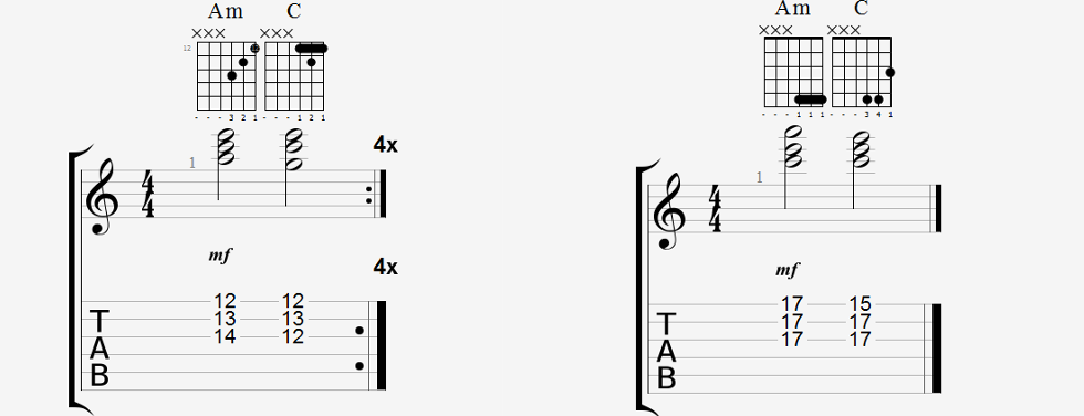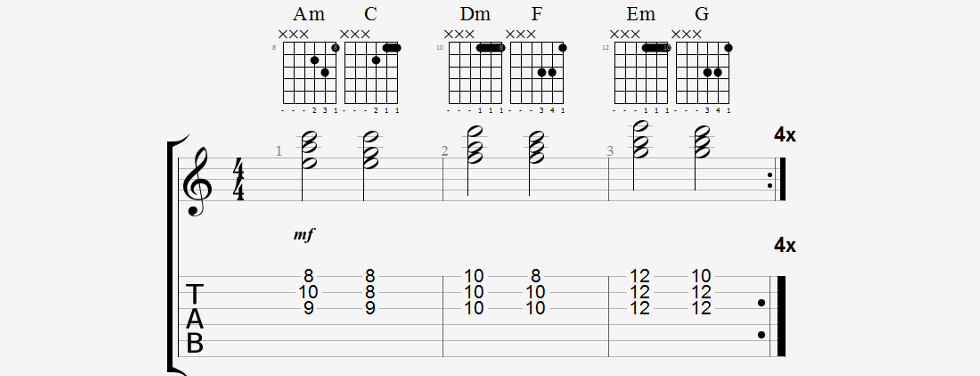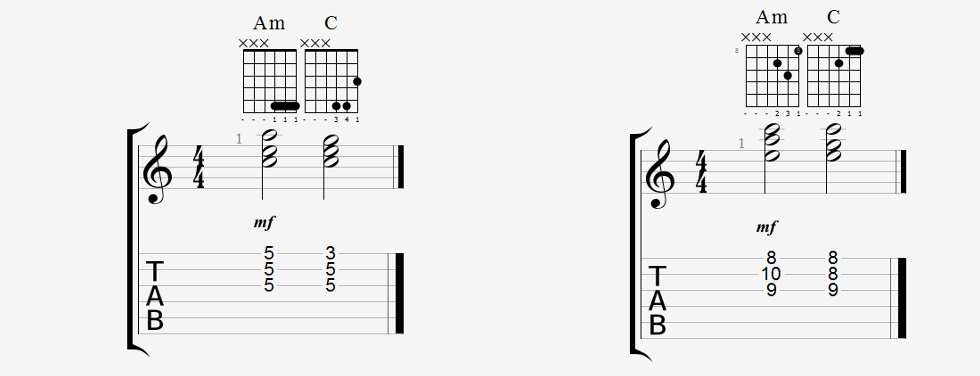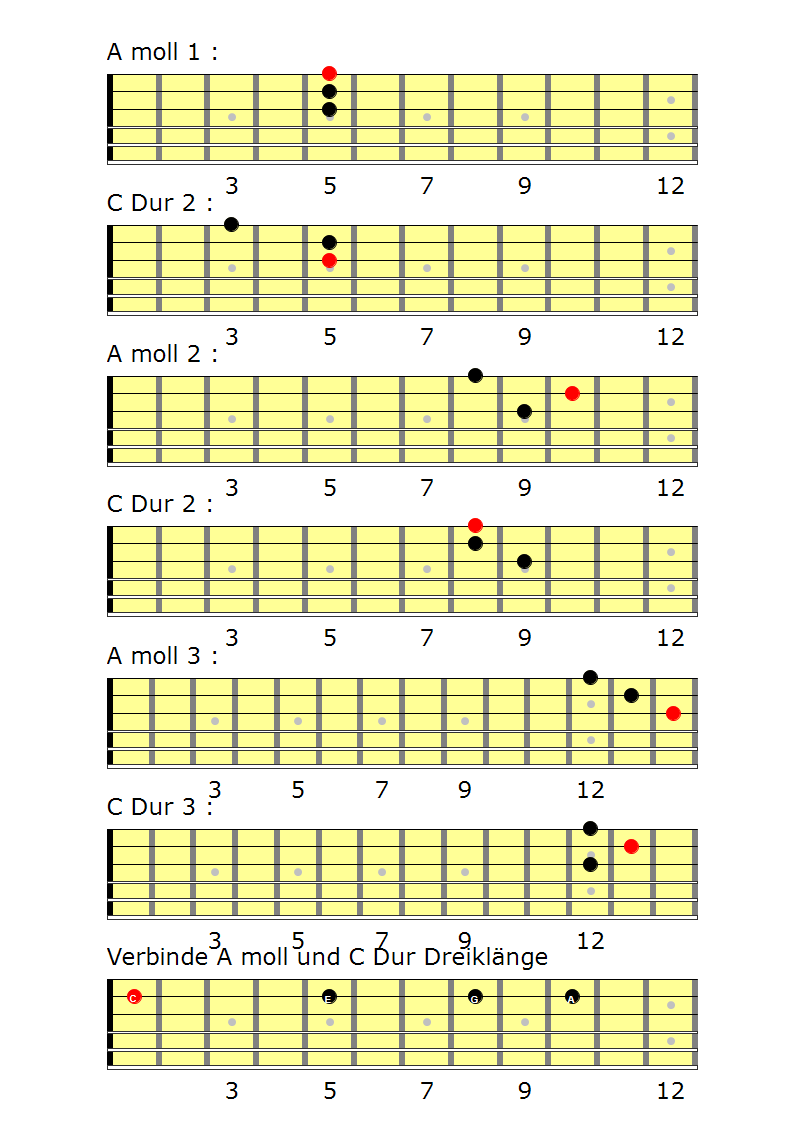Verbinden von Moll und Dur Dreiklängen